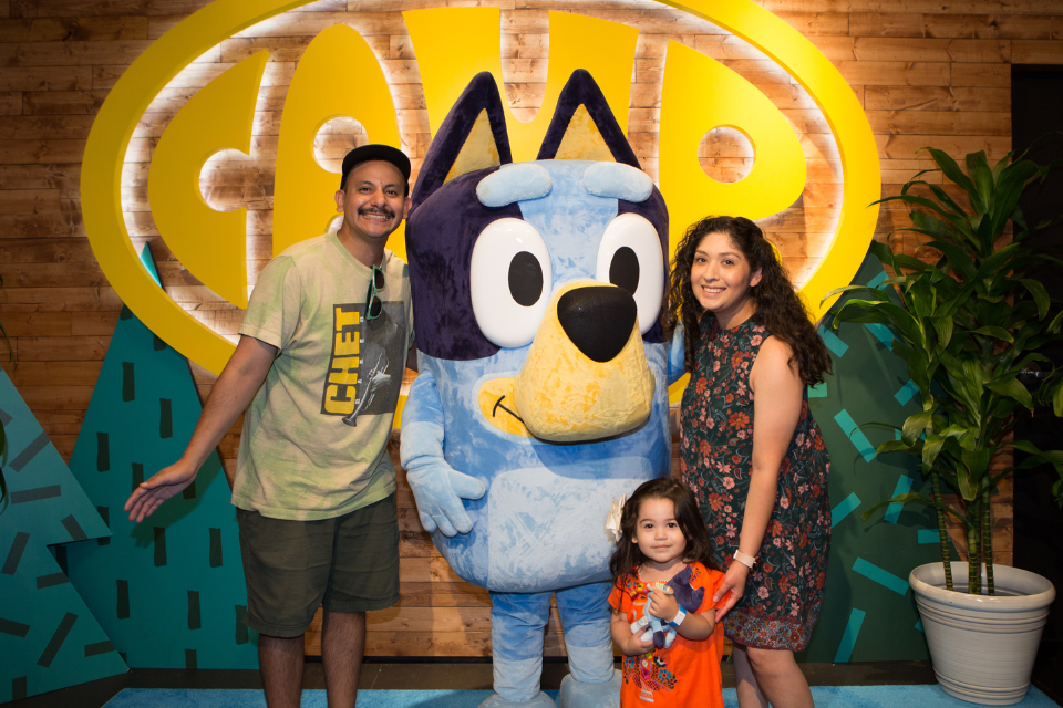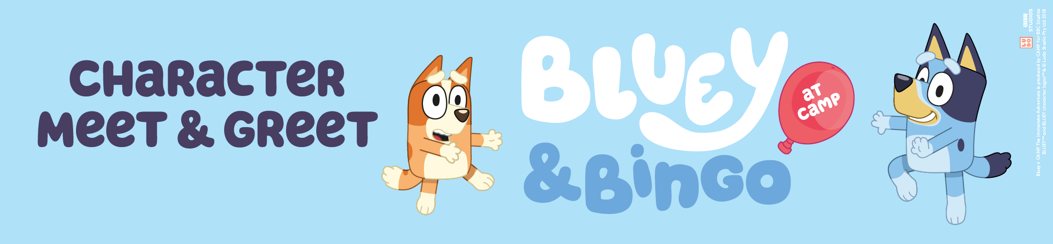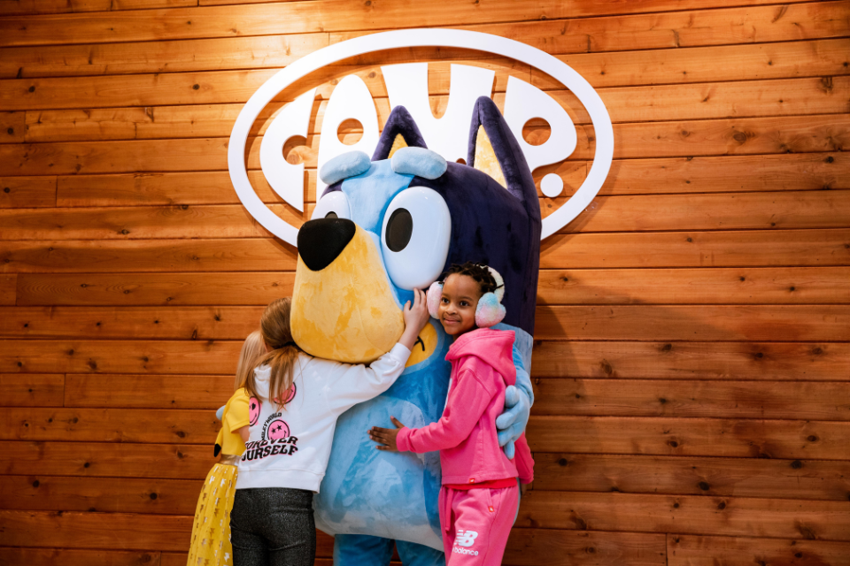 Meet Bluey and Bingo. Give 'em a hug, a high five, or wave to say hello!