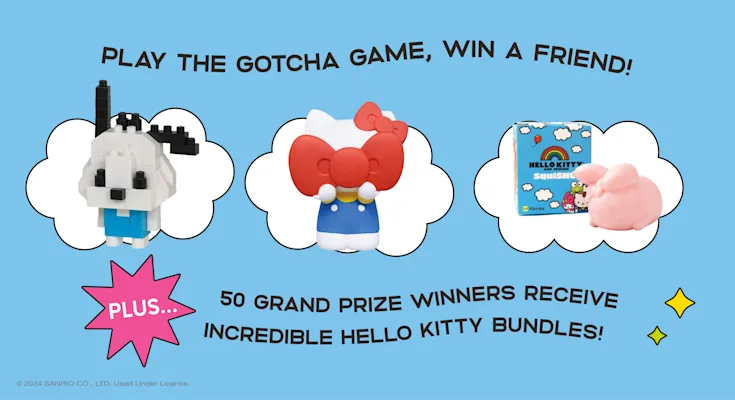 Hello Kitty is celebrating her 50th anniversary — 5 decades of friendship, kindness, and fun! To celebrate this milestone, CAMP is teaming up with Sanrio to create Gotcha Game, an incredible Hello Kitty-themed claw game you can play at CAMP Los Angeles.
