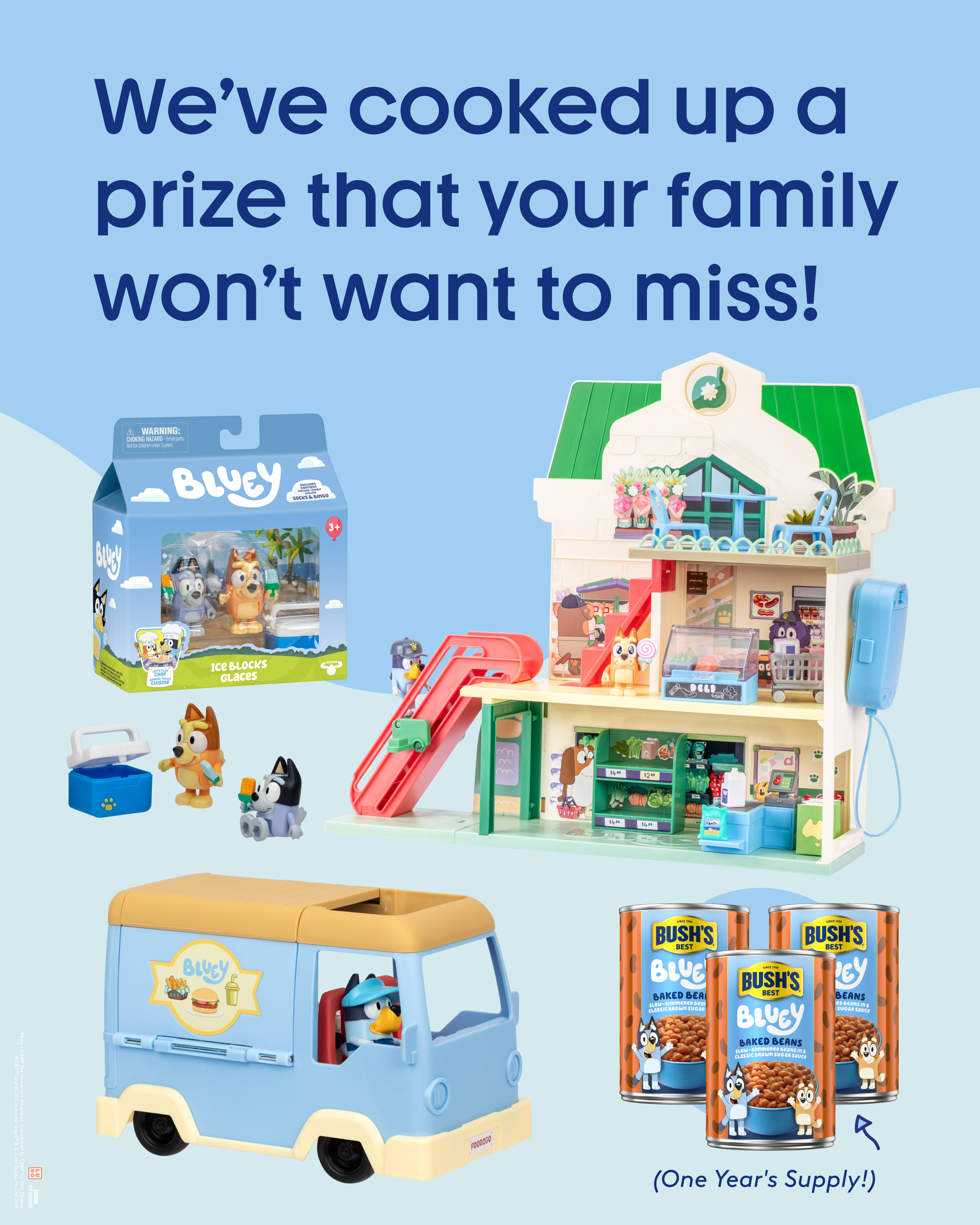 • A one-year supply of Bush’s Bluey Baked Beans