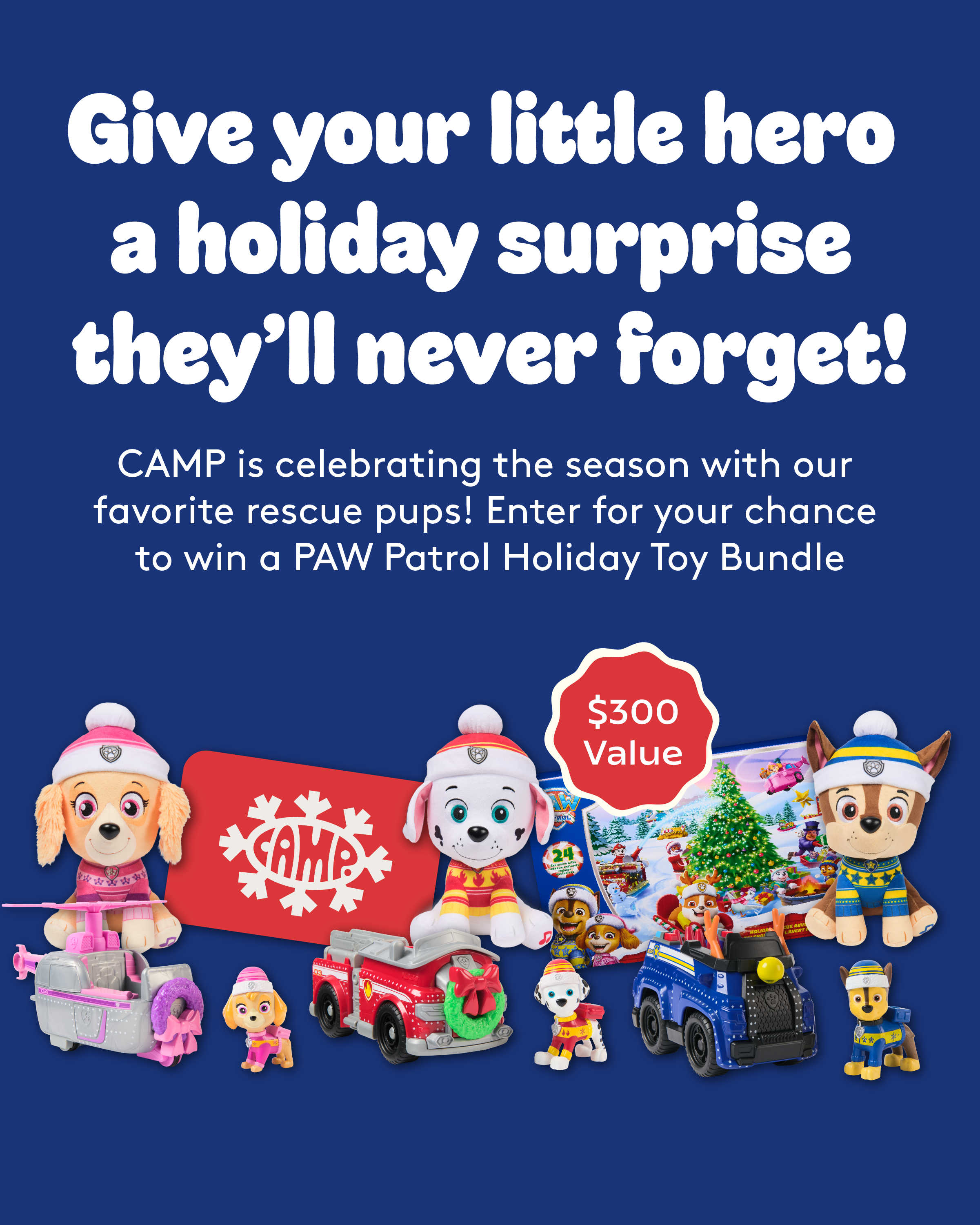 CAMP is bringing the holiday cheer with our favorite rescue pups! Enter now for a chance to win a PAW Patrol Holiday Toy Bundle (valued at $300) perfect for the little hero in your home. Your bundle includes: