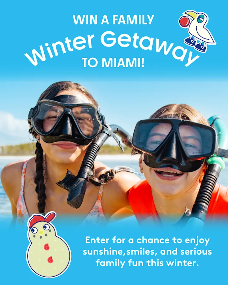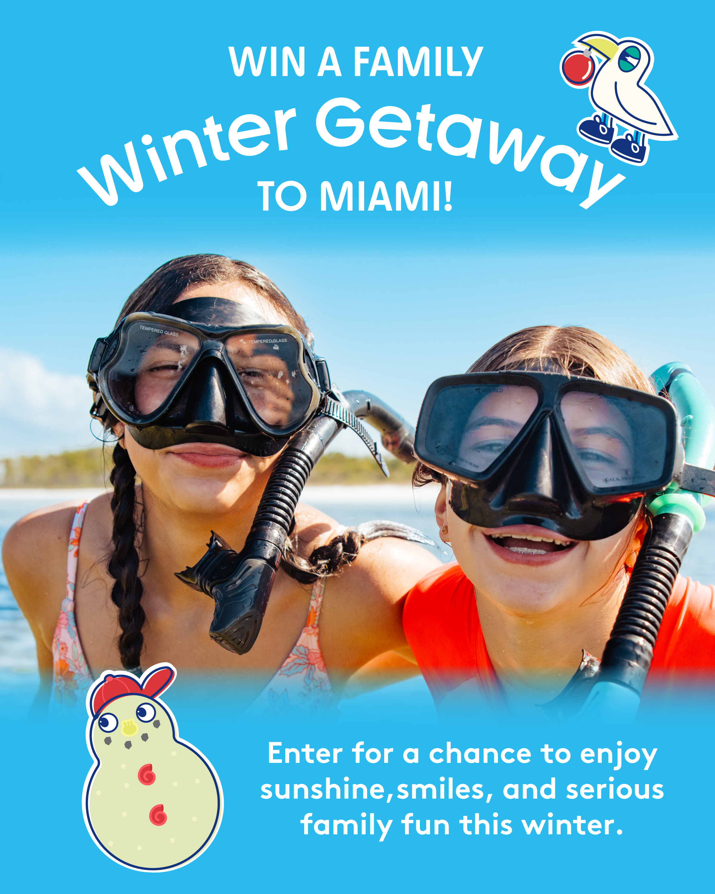 One lucky winner will receive a Family Winter Getaway to Miami, FL this winter (up to $4,700 value). Prize package consists of: